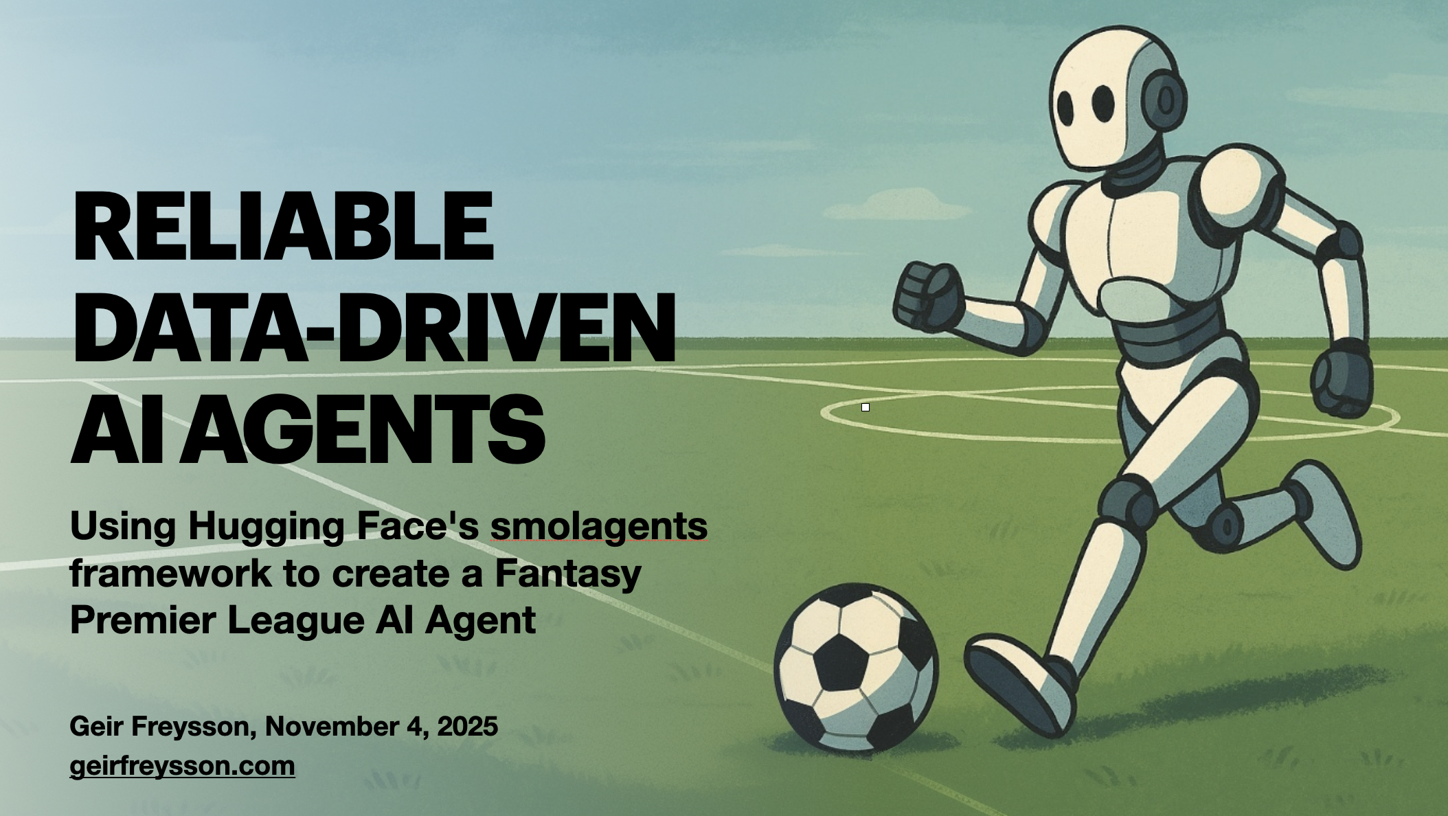 My talk is titled “Reliable Data-Driven AI Agents: Using Hugging Face’s smolagents framework to create a Fantasy Premier League AI Agent.”